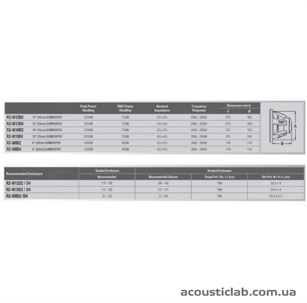 Це сабвуферний динамік R2-W10D2 серії Type-R від Alpine, у нього поєднується вражаюча басова віддача, висока допустима потужність і ефективність. Послужить ідеальним компаньйоном для динаміків цієї ж серії, що робить Вашу акустичну систему більш повноцінним.
