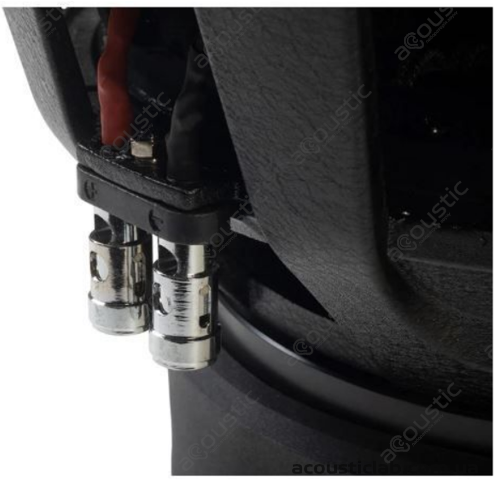 Магнитная система представлена высококачественными тройными ферритовыми магнитами Y35 и двойной, 4-слойной алюминиевой звуковой катушкой, диаметром 64 мм. Каждая катушка обладает номинальным сопротивлением 2 Ом, что необходимо учитывать при подборе усилителя.